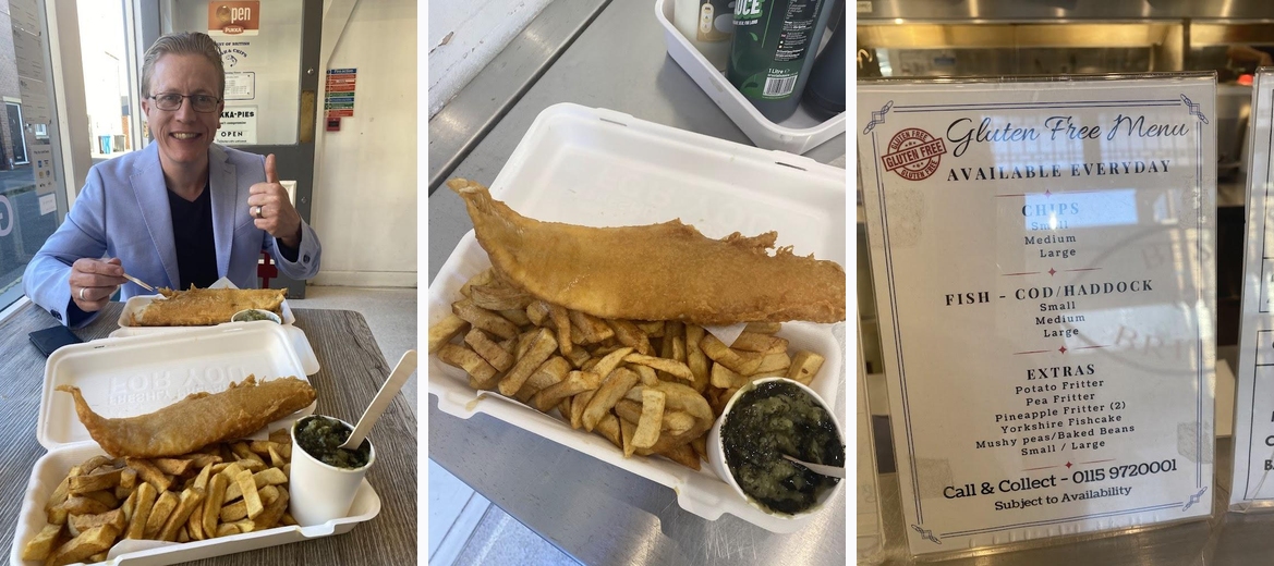 Such lovely people who genuinely care about the food the provide. We stopped off before visiting the theatre and the prices are fair, gluten free available full time with no extra charges or time restrictions! Cooked fresh and the batter was perfect! Portions were great too! Well recommend and thank you